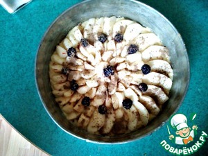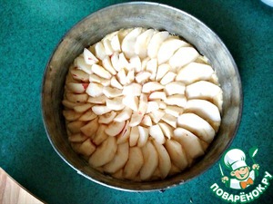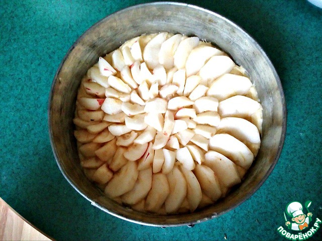 Очищаем яблоки от шкурки и косточек, режем как душе угодно и выкладываем на тесто (не вдавливаем яблоки в тесто). -