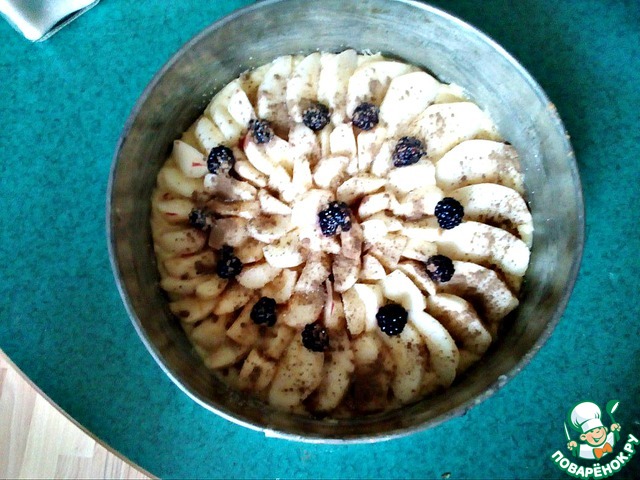 Смешиваем 1 ст. л. корицы и 1 ч. л. сахара, посыпаем наш пирог ( я так же выложила на пирог несколько ягод ежевики)