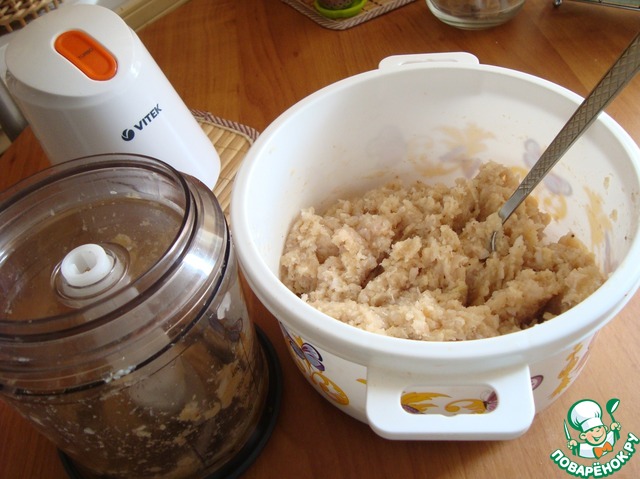 Измельчила рыбное филе с салом в блендере, порезав небольшими кусочками. Добавила лук, посолила и поперчила, положила яйцо. Хлеб размочила в молоке и добавила к фаршу.