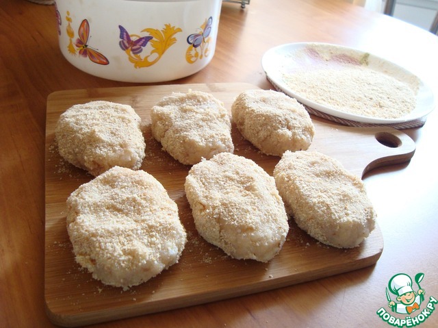 Сформировала котлеты и обваляла их в сухарях. Получилось 6 шт котлет.