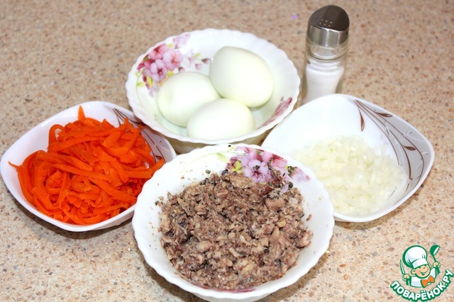 Ингредиенты для приготовления салата. Предварительно отварить яйца и морковь.