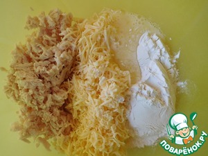 Режем ее мелко (очень мелко). Сыр натираем на мелкой терке.