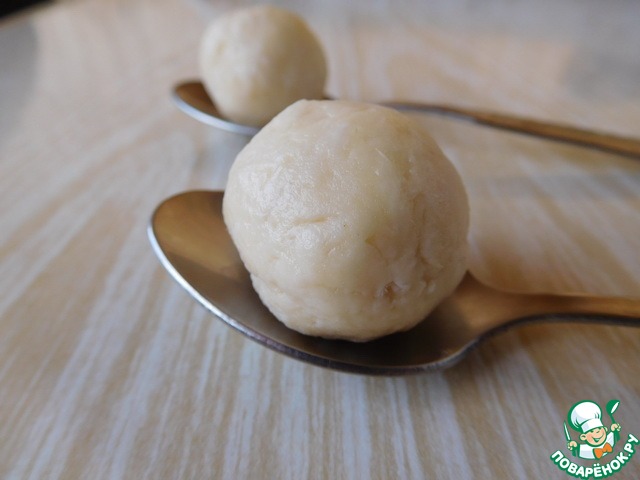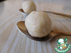 В это время формируем из нашего теста шарики (на фото чайная ложка).