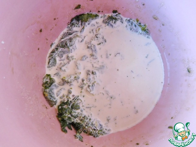 После тщательного растирания, когда уже появился сок, добавляем 50 мл. сливок и еще раз тщательно растираем. Процеживаем и отжимаем наш мятно-сливочный экстракт.
