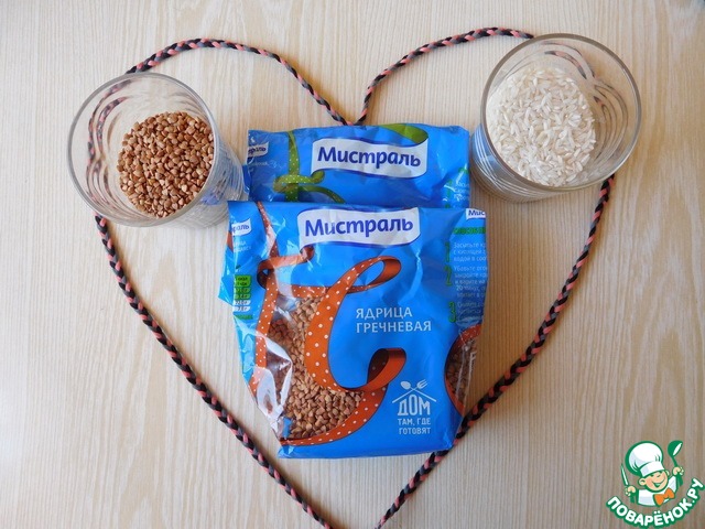 - Крупа гречневая (фирмы "Мистраль",стакан 250 мл. ) — 1/2 стак.