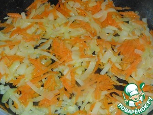 Репчатый лук нарезать полукольцами, морковь натереть на крупной терке. Обжарить овощи на растительном масле до готовности.