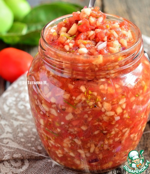 Очень ароматный и нежный вариант соуса Сальса с томатами, сладкими яблоками, специями и соевым соусом! Прекрасно к мясным блюдам, пасте, как самостоятельная закуска на хлеб!