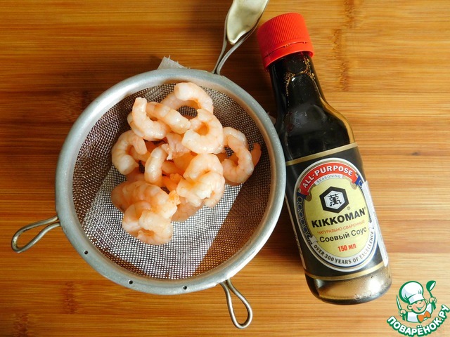 - Креветки (очищенные, сваренные в подсоленной воде) — 100 г