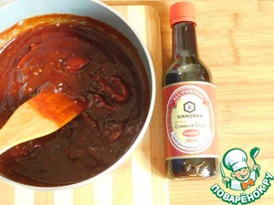 Снимаем смесь с огня, добавляем вустерширский и сладкий соевый соус Kikkoman. Измельчаем соус в блендере до однородности.