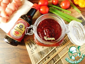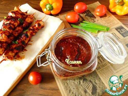 Соус Барбекю готов, перекладываем его в соусник или в банку, отложив немного для приготовления вкусных ароматных шашлычков из куриного филе.