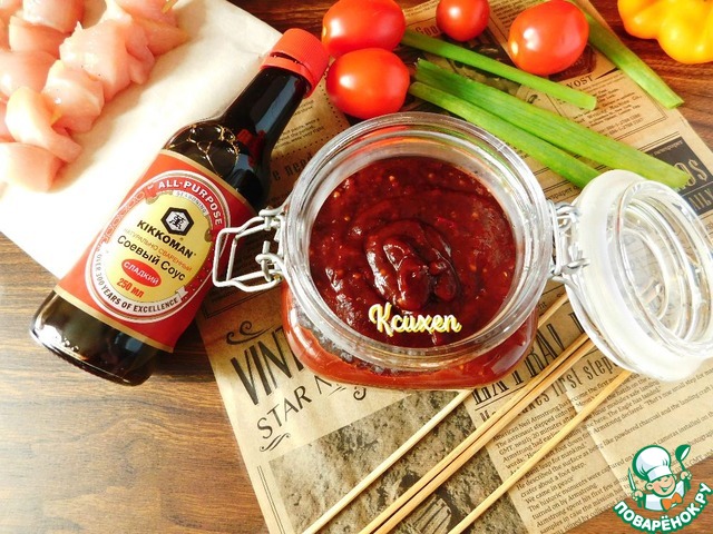 - Соевый соус (сладкий от ТМ Kikkoman) — 2 ст. л.