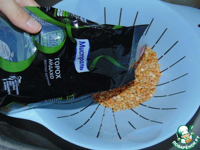 Желтый колотый горох Айдахо от Мистраль хорошенько промыть.