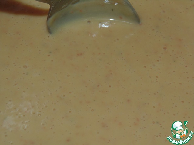 Продолжая взбивать, осторожно вводим желтки (я взяла 2 маленьких). Текстура каши становится гладкой и кремовой.