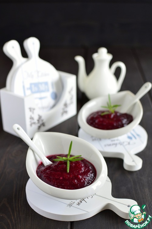 После запеченную массу пюрировать погружным блендером до однородной массы. Подавать в охлажденном виде. Хранить не более 2 недель в холодильнике в закрытой баночке.