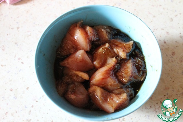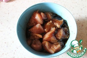 Смешать все ингредиенты для маринада, кроме крахмала и воды.