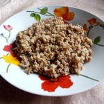 Тщательно все перемешайте и на слабом огне, постоянно помешивая, тушите, пока не почувствуете запах жареного яйца, и пока гречка не сварится до конца.