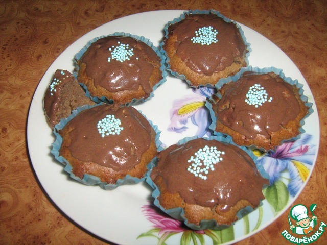 10. Покрыть глазурью горячие кексы. Украсить (посыпать, как вариант, перламутровыми голубыми кондитерскими шариками).