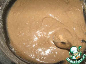 8. Приготовить глазурь. Можно взять покупную (например, ванильную), добавить 1,5 столовые ложки какао - порошка, немного горячей воды.