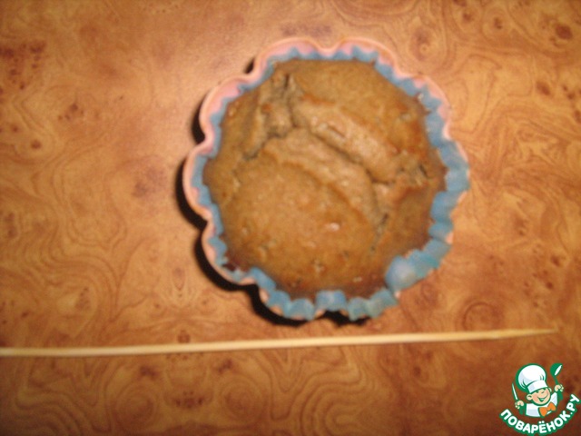 7. Вылить тесто, как сметана, заполнив на 2/3 ) и выпечь в духовке при t=180 гр. 15 минут, проверив готовность лучиной. Кексы могут немного осесть из-за своей воздушности (не пугаться!!), оставаясь высокими и красивыми.