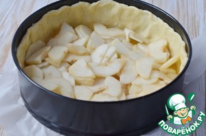 Груши порезать, уложить в форму с тестом, можно сбрызнуть лимонным соком.