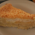 Если пирог комнатной температуры разрезать, то сливочная начинка может немного вытечь.