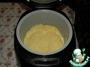 Вылить содержимое в чашу мультиварки, всыпать пшено. Смазать края чаши сливочным маслом. Ещё, когда варю молочные каши, сверху я ставлю пластиковый поддон для варки на пару, для предотвращения убегания молока.