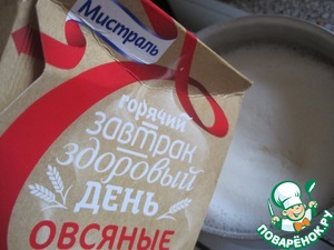 • Воду соединяем с молоком, добавляем соль, сахар. Доводим до кипения и всыпаем овсяные хлопья ТМ Мистраль.