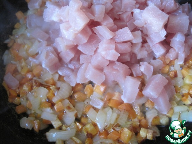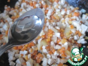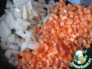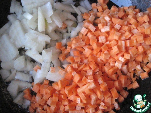 Лук, морковь измельчаем, обжариваем на растительном масле.