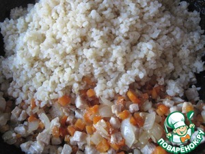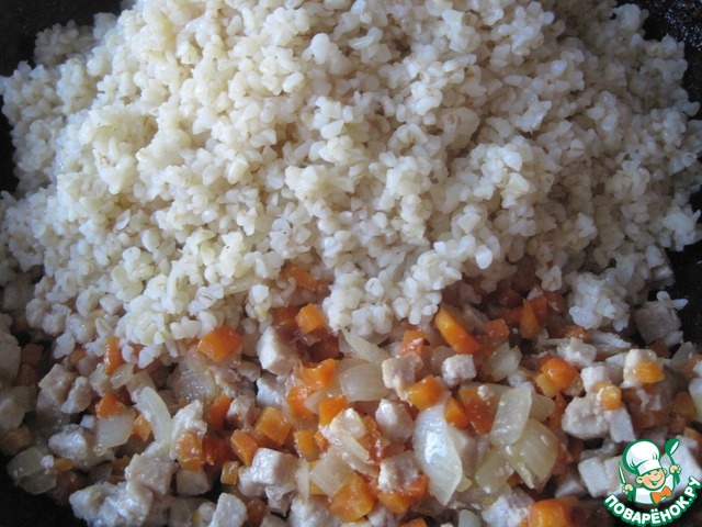 В кипящую подсоленную воду всыпаем БУЛГУР и варим до впитывания крупой всей воды.