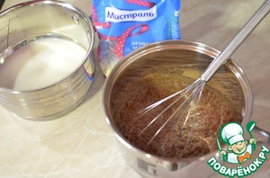 В один сотейник добавить какао и хорошо перемешать венчиком. Сварить кашу. Каша должна получиться не очень густой, консистенции сметаны.