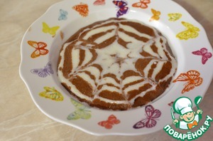 И так далее чередуем слои. Чайной ложкой (обратным ее концом) сделать линии к центру каши, у меня вышло 8 линий. Получится такая вот паутинка.
