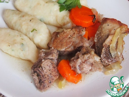 Вообще этот рецепт - это удачное сочетание французской и чешской кухни - мясо готовится с вином по французскому варианту, а "шишки" - это уже любимые чешские кнедлички. Можно их хранить в морозилке.