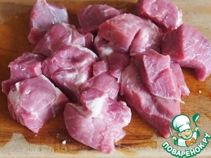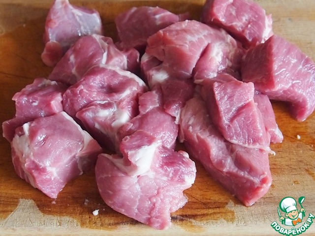 Мясо нарезать довольно крупными кучочками.