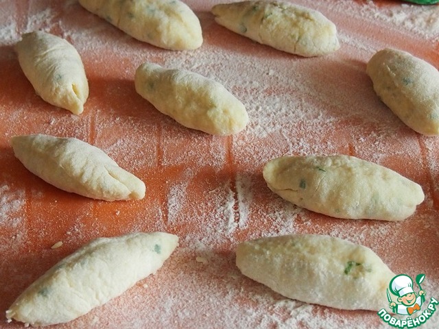 Из кусочков ладошками формируем форму шишки величиной с палец. В принципе, это ньоки, но мне не нравится это слово, поэтому использую чешский вариант названия - шишки, это и по форме соответствует и для уха привычнее.