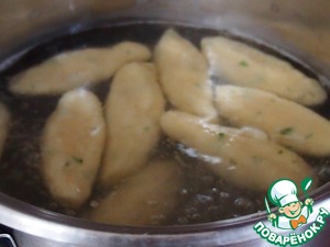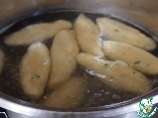 В широкой кастрюле закипятить воду, подсолить по вкусу. В кипящую воду осторожно опускать наши ньоки-шишки-кнедлички. Лучше это делать не очень большими партиями, потому что во время варки они разбухнут. Варить примерно 8 минут. Доставать шумовкой.