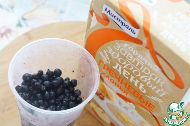 Два важных ингредиента блюда: свежая черника и гречневые хлопья Мистраль.