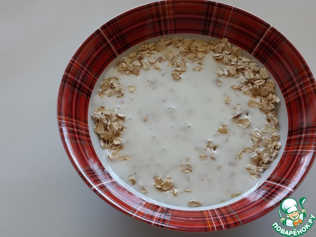 • Залейте геркулес кефиром и оставьте для набухания на 5-6 часов (на ночь).