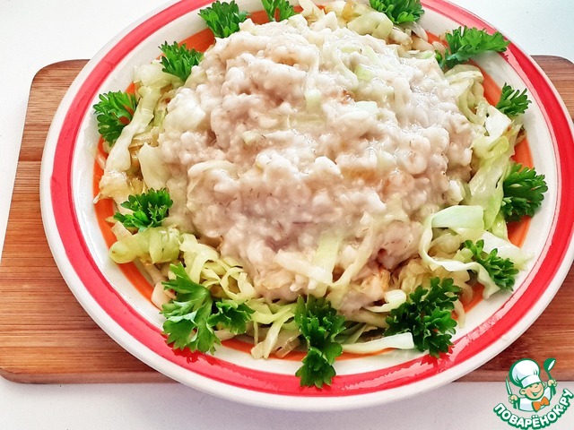 Смешайте капусту с кашей.