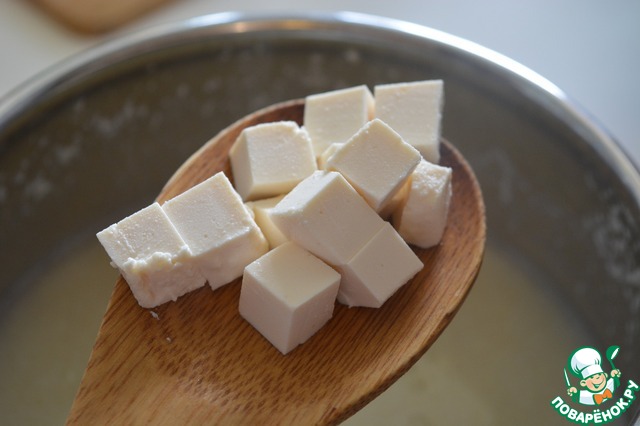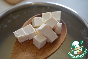 Фету нарежьте кубиками. Половину сыра добавьте в кашу.