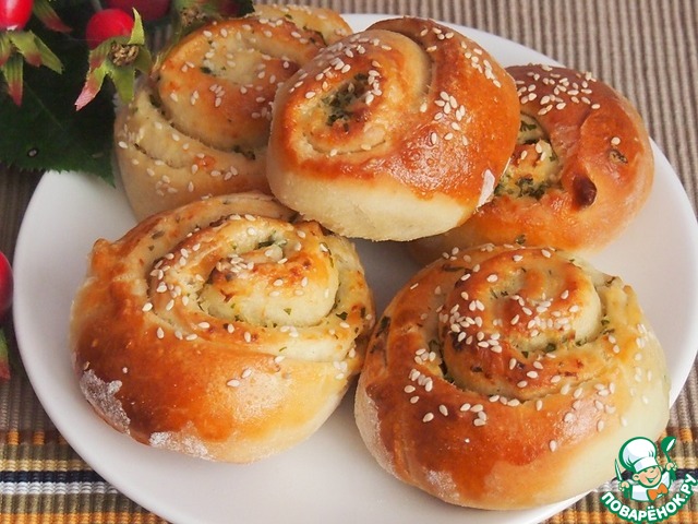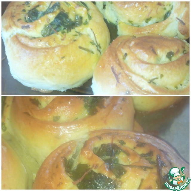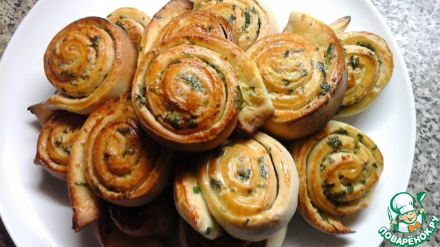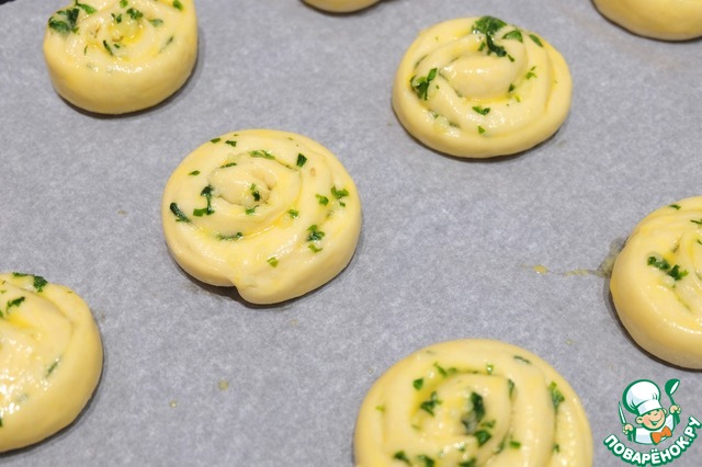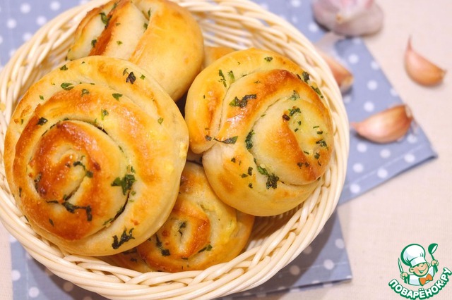 Ароматные булочки с зеленью и чесноком хорошо подойдут в борщу, рассольнику, к блюдам из мяса.