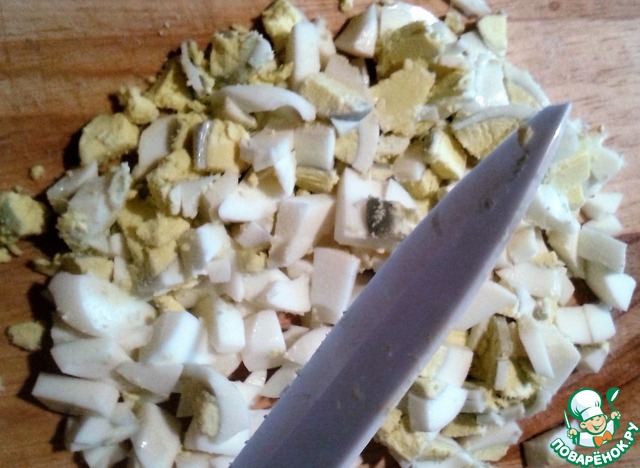 • Яйца отварить и мелко порезать.