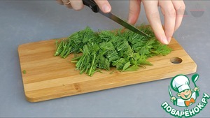 Зелень можно резать не слишком мелко. Я добавила петрушку и укроп. Но очень вкусно также с зеленым луком.