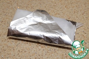 Завернуть дополнительно в лист фольги. Поместить в духовой шкаф. Запекать до готовности.