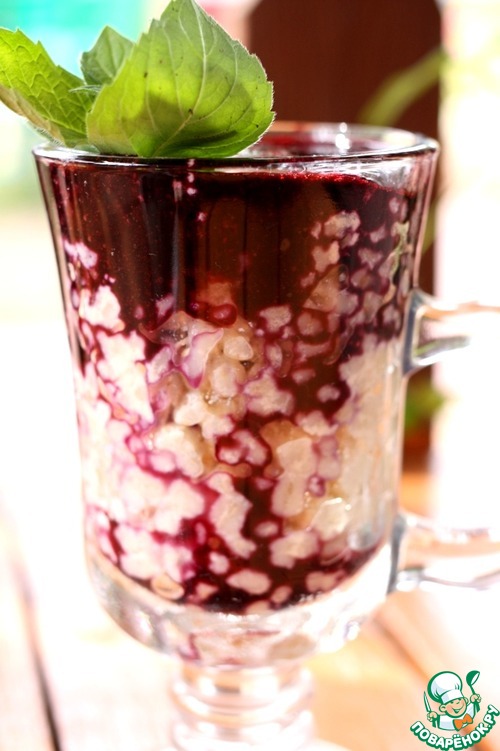 ))и решила, что нужно срочно заполнять пробел с перловочкой, и он просто обязан попробовать эту чудесную кашу на молоке, а к ней я добавила его любимую чернику с мятной ноткой. Его бокал очень быстро опустел и он тут же принялся за мой, а бабушкин и дедушкин бокалы я спасала всеми частями тела