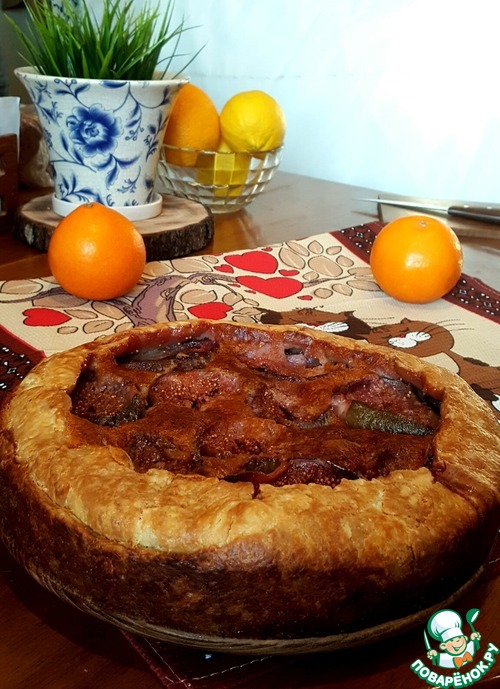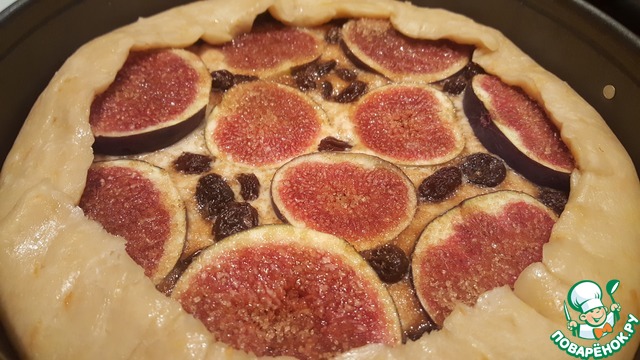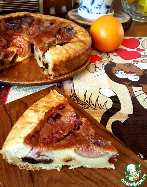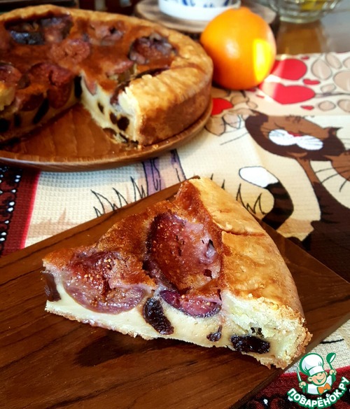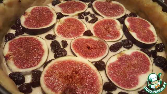 Чуть сладкое за счёт мёда песочное тесто с ароматной цедрой мандарина, свежий инжир, нарезанный половинками, распаренный тёмный изюм, вымоченный в ароматном бальзаме и запечённый крем из маскарпоне с ароматом рома. Этим особенным пирогом хочу поздравить с Юбилеем мою замечательную подругу Манюшеньку!!! Счастья тебе, дорогая!!!