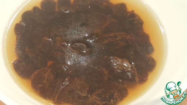 Залить изюм горячей водой и добавить ложку бальзама или коньяка.