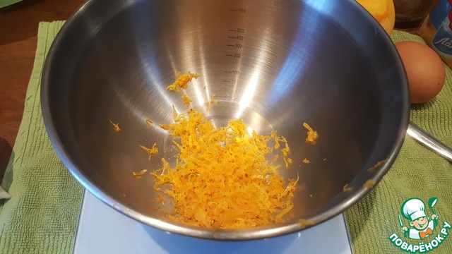Натереть в подходящую ёмкость цедру одного мандарина.