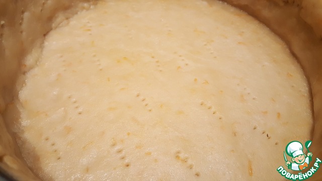 Добавить к цедре просеянную муку и натёртое сливочное масло.