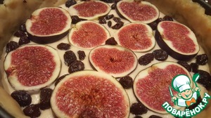 Разрезать инжир на половинки и выложить на крем срезом вверх.