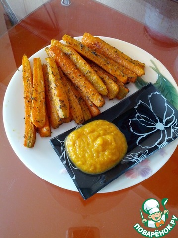 Нежный и густой томатный соус-дип можно сочетать с различными запеченными овощами. Я предлагаю приготовить к соусу морковь фри.